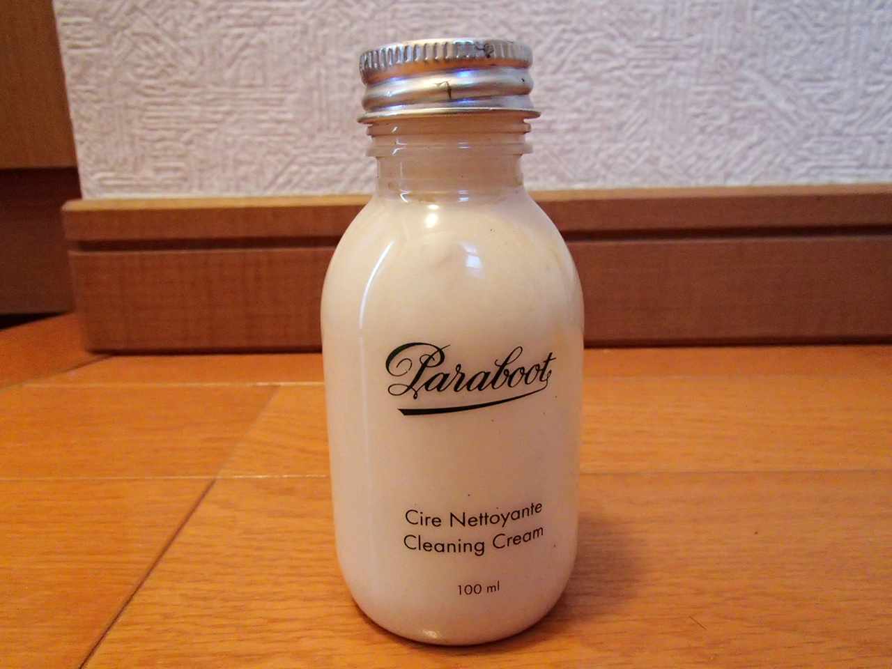 この色のシャンボードは、汚れがあまり目立ちません。そのため古いクリームが残っていてもあまり目立たないのですが、1年に一度の頻度で、パラブーツ純正のクリーニングオイルで汚れを落しています。