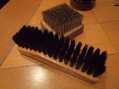 そうして最後の仕上げはブラッシングです。硬めのブラシでごしごしと、あまったクリーム分を取り除くために磨き上げます。この工程でかなり輝きが出ます。