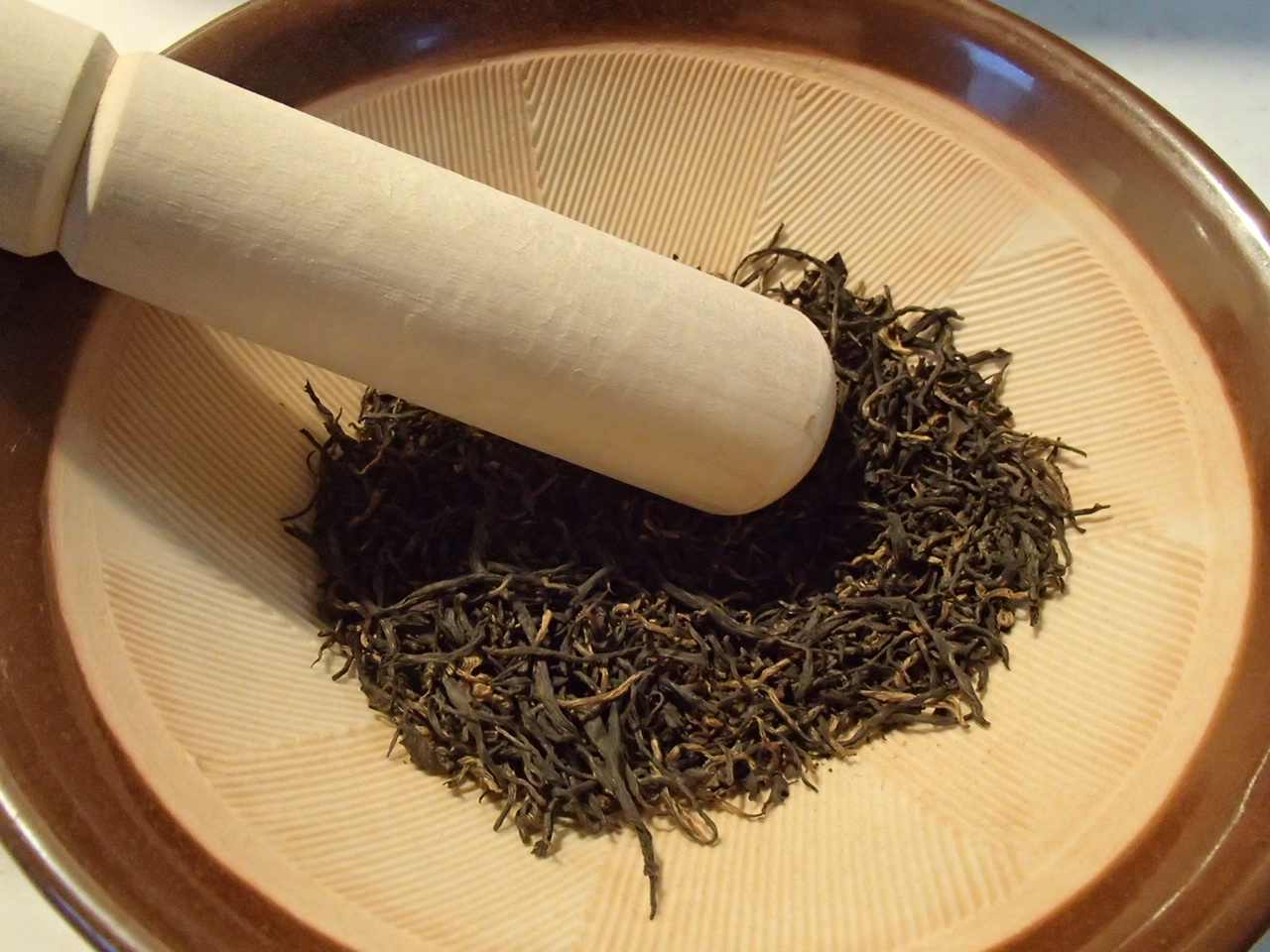 4)紅茶はすり鉢で粉状にします。その紅茶を3に混ぜます。