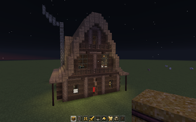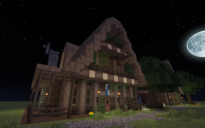 Outside of the Wetern Log house with moon by Minecraft