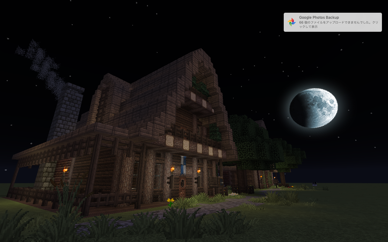 Outside of the Wetern Log house with moon by Minecraft